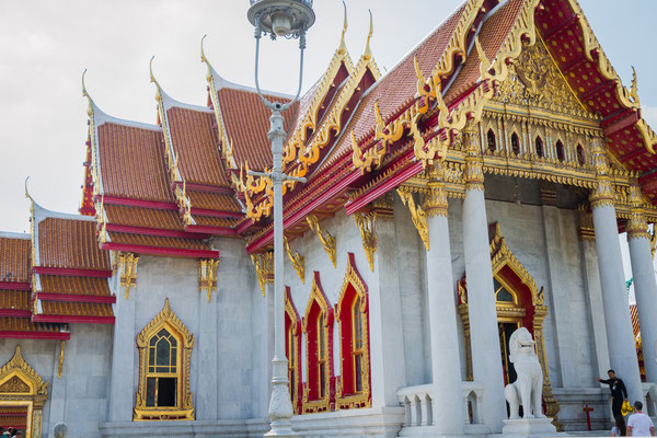 Gerade unser Tag in Bangkok war für uns (da wir diesen Tag relativ am Anfang unserer Reise hatten) eine wahre Herausforderung. Es ist eine riesen Stadt mit der ich hier absolut keine vergleichen könnte. Es wimmelt von Leuten, es ist heiß, es riecht in vielen Ecken unangenehm, die Leute dort sind sehr aufdringlich (Tuk Tuk-Fahrer, Taxifahrer und auch andere die versuchen dir etwas anzudrehen) und überall wo du reingehst hast du Angst zu erfrieren. Also es ist definitiv nicht jedermanns Sache und im ersten Moment ein wahnsinniger Kulturschock vor allem wenn man von einem Traumstrand kommt und wie Marcus und ich eher absoluter Dorfliebhaber ist, also daher würde ich Bangkok entweder zu Beginn (danach schockt dich nichts mehr) oder Ende der Reise (wenn man die Kultur bereits kennengelernt hat) empfehlen.