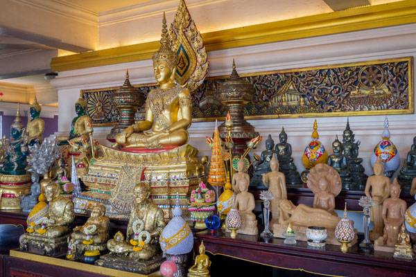 Unser Tuk-Tuk-Fahrer hatte wie vereinbart auf uns gewartet und war bereit für die nächste Etappe. Tja jetzt kam es so, dass wir zu „Thai Fashion“ gefahren wurden und wir damit angeblich sehr viel Glück hätten, da dies sonst nicht für Touristen zugänglich wäre und so kam es, dass uns angeblich originale Armani-Anzüge versucht wurden anzudrehen. Wir haben uns das Spektakel kurz angesehen und haben uns schnell und höflich verabschiedet (was auch akzeptiert und trotzdem mit Freundlichkeit hingenommen wurde). Als wir dann zum nächsten Ort wollten fuhr uns unser Fahrer wieder nicht hin, es ging zum zweiten "Thai Fashion", er erklärte uns ein wenig aufgebracht, dass er uns dort hinbringen müsse, da er sonst kein Geld bekommen würde und da uns das ziemlich leid tat, ließen wir uns hinfahren …wobei ich gestehen muss, dass ich es herrlich amüsant fand, wie alle Touristen in den Tuk Tuks angekarrt wurden :-) Marcus hatte schon ein wenig schlechte Laune, ich hab das Ganze irgendwie doch sehr mit Humor gesehen und fand es wirklich lustig, denn danach hat uns unser Fahrer tatsächlich wieder zur nächsten Sehenswürdigkeit gebracht und alles war halb so wild. Es war zwar ärgerlich, weil wir nur den einen Tag in Bangkok hatten, aber gut damit muss man rechnen.